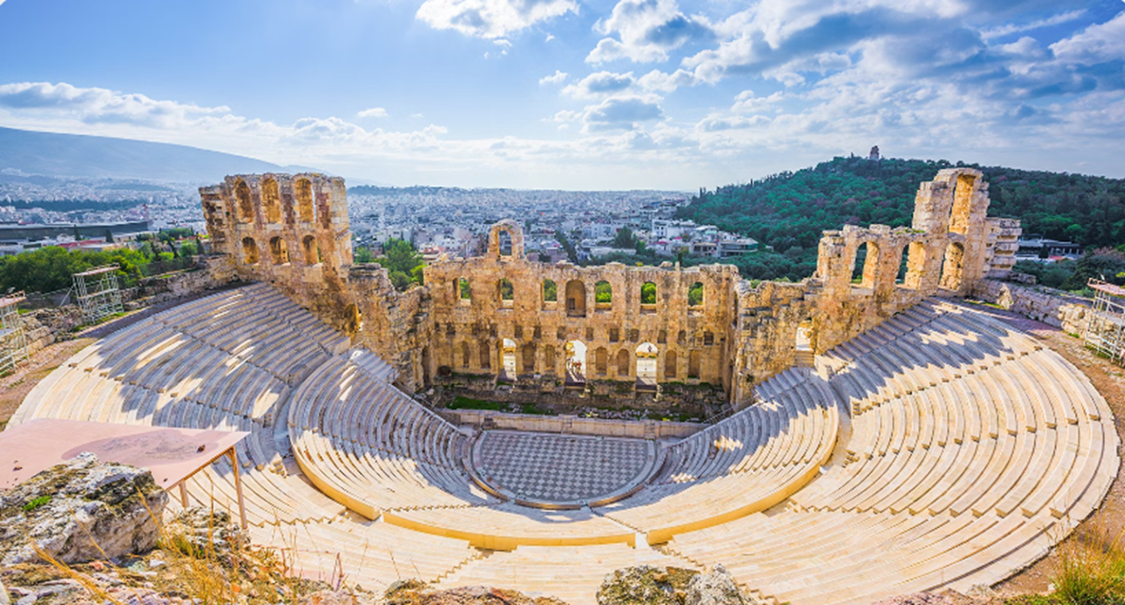 Begin your walk up the sacred hill, imagining it as more than a climb — it’s a journey back 2,500 years, to the Golden Age of Athens. Follow the path once used by ancient Athenians during the Panathenaic Festival, a grand procession in honor of Athena, the city’s patron goddess. Look around at the slopes scattered with shrines, caves, and theaters that tell the story of daily life and worship in Classical Greece. Make your first major stop at the Theatre of Dionysus, the birthplace of Greek drama. Built in the 6th century BCE, it could seat up to 17,000 spectators. This is where plays by Sophocles, Euripides, Aeschylus, and Aristophanes were first performed. The front rows — made of marble — were reserved for priests and dignitaries. Continue up the hill and find the Odeon of Herodes Atticus, built in 161 AD by a wealthy Roman benefactor in memory of his wife. Unlike the Theatre of Dionysus, this was used for musical performances and is still active today during the Athens Festival.